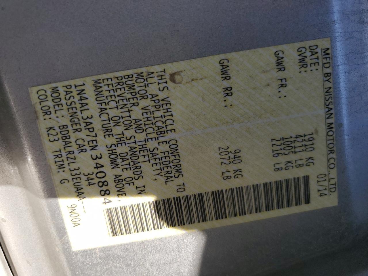 2014 NISSAN ALTIMA 2.5/S/SV/SL