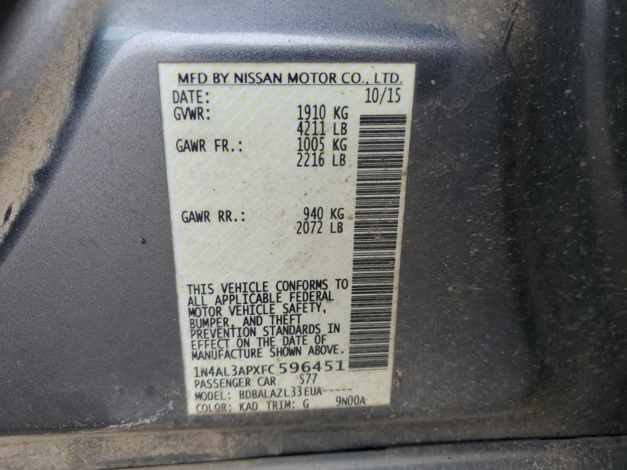 2015 NISSAN ALTIMA 2.5
