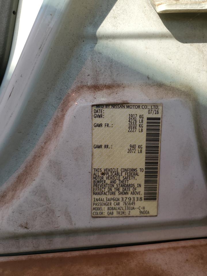 Колір БілийЦиліндри 4VIN 1N4AL3AP6GN379338Стан Заводиться та їде (перевірено)Ушкодження Передня або задня