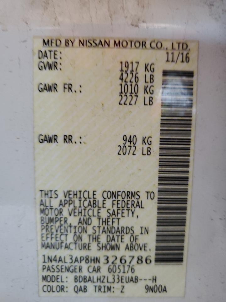 NISSAN ALTIMA 2.5 2017 р.в., (1N4AL3AP8HN326786) з США
