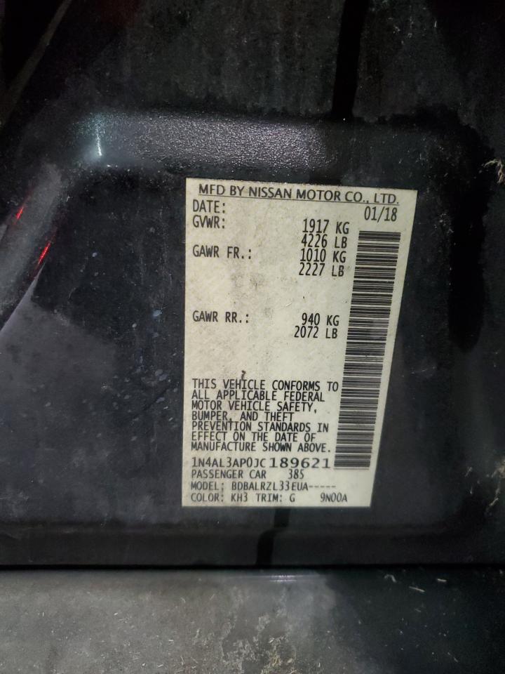 Колір ЧорнийЦиліндри 4VIN 1N4AL3AP0JC189621Стан Заводиться та їде (перевірено)Ушкодження Передня або задняДата аукціону 2025-11-04