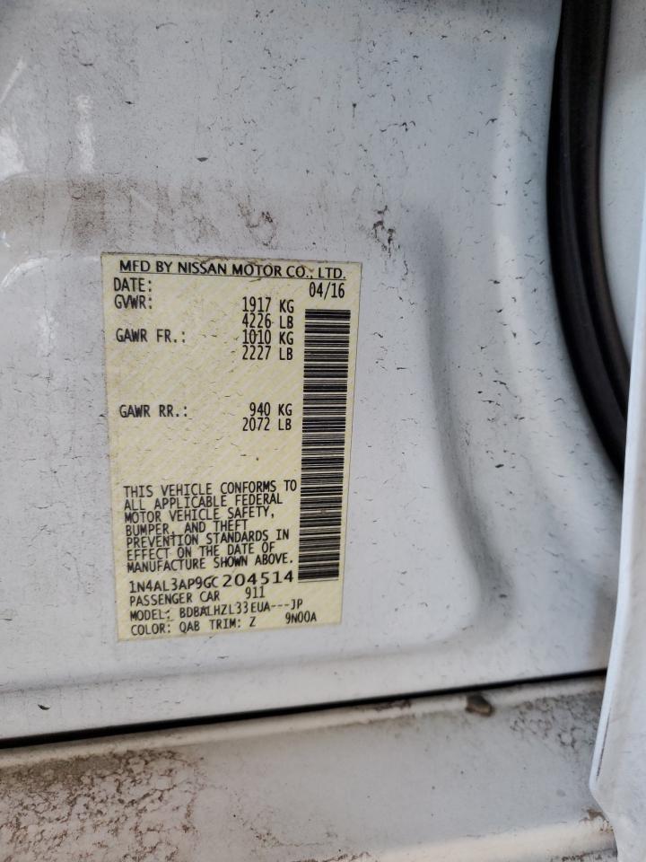 NISSAN ALTIMA 2.5 2016 р.в., (1N4AL3AP9GC204514) з США