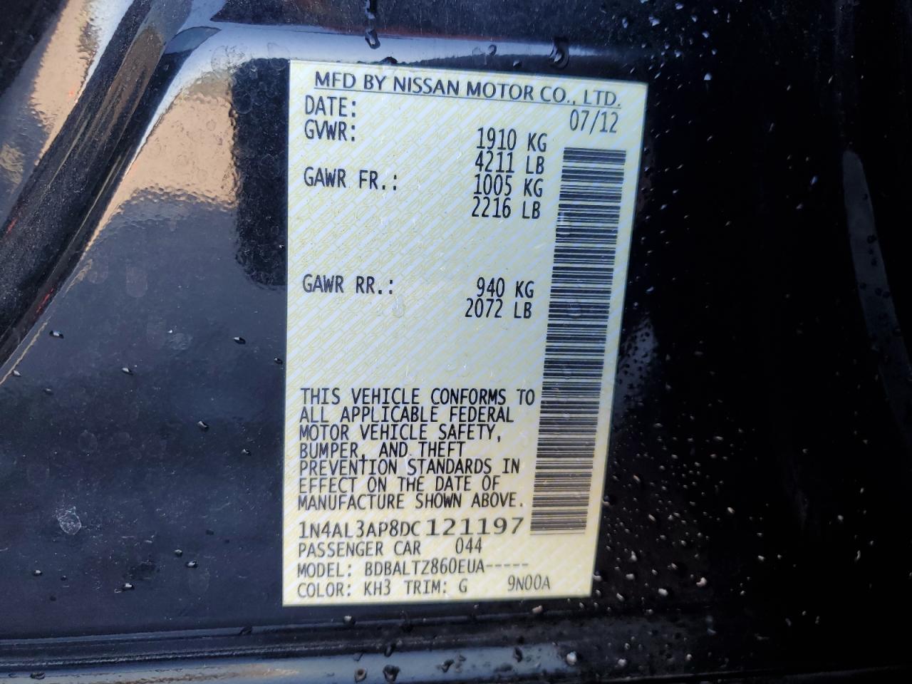 Колір ЧорнийЦиліндри 4VIN 1N4AL3AP8DC121197Стан Заводиться та їде (перевірено)Ушкодження Задня