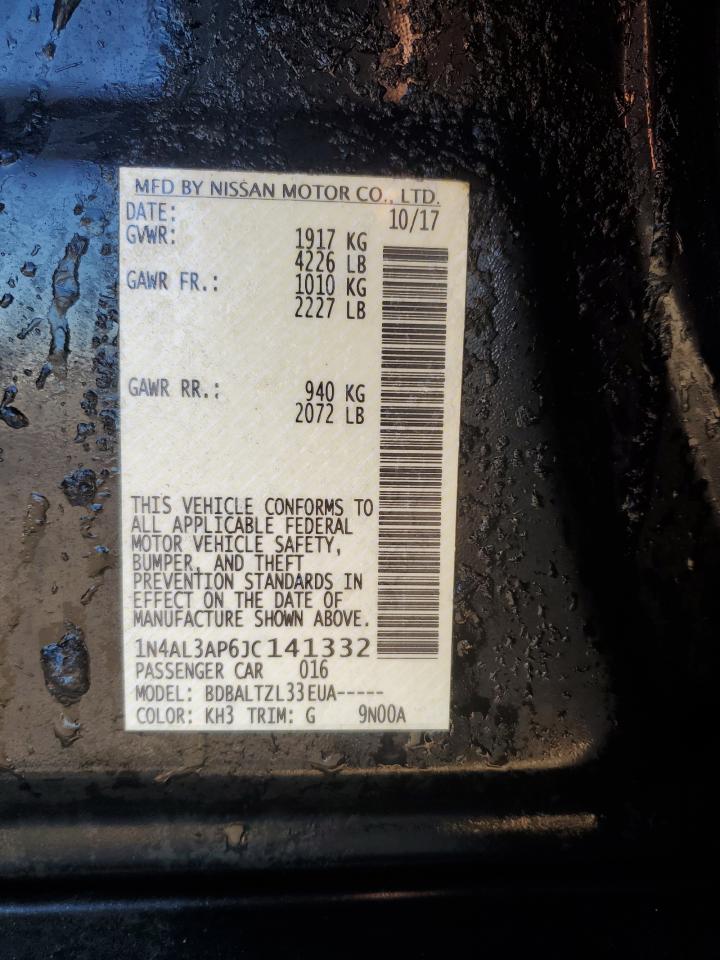 Колір ЧорнийЦиліндри 4VIN 1N4AL3AP6JC141332Стан Заводиться та їде (перевірено)Ушкодження Передня або задня