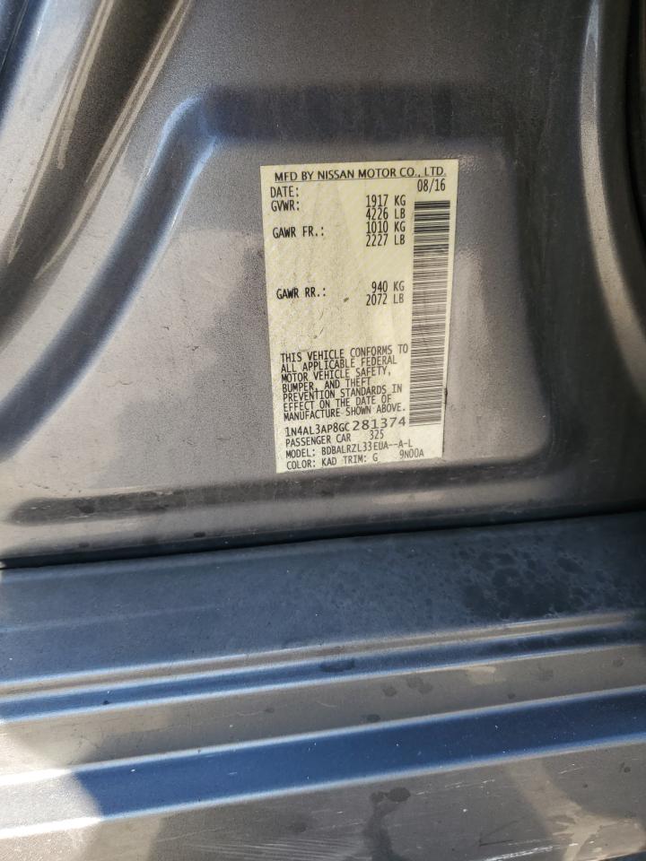 Колір СірийЦиліндри 4VIN 1N4AL3AP8GC281374Стан ЗаводитьсяУшкодження Передня або задня