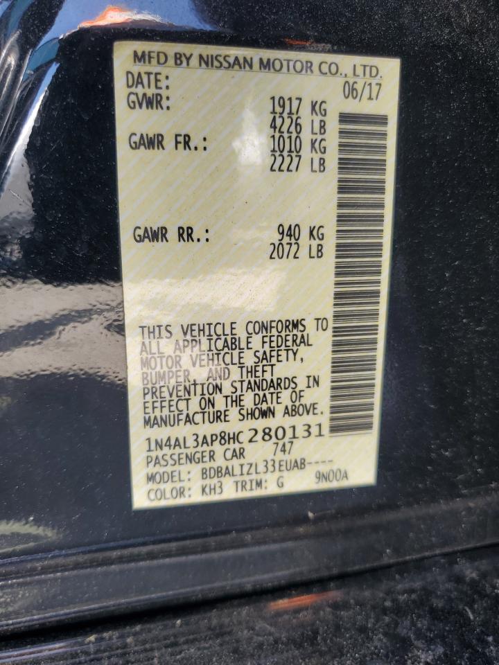 Колір ЧорнийЦиліндри 4VIN 1N4AL3AP8HC280131Стан НевідомоУшкодження Передня або задня
