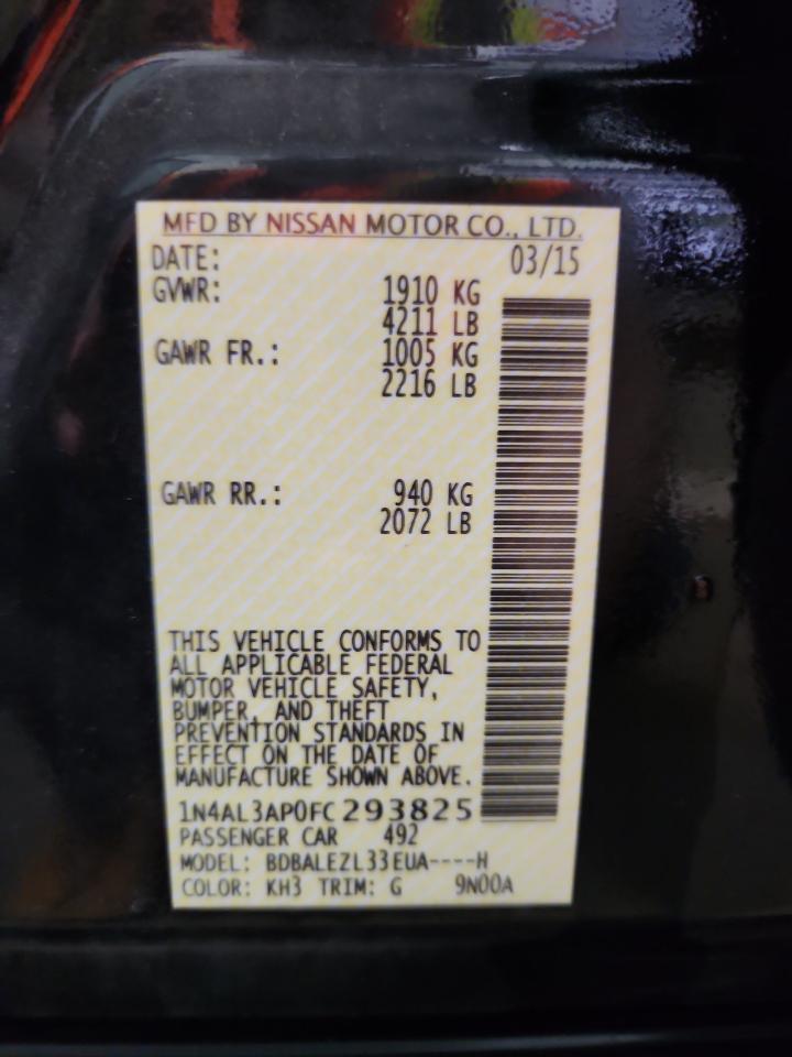 Колір ЧорнийЦиліндри 4VIN 1N4AL3AP0FC293825Стан Заводиться та їде (перевірено)Ушкодження Передня або задня