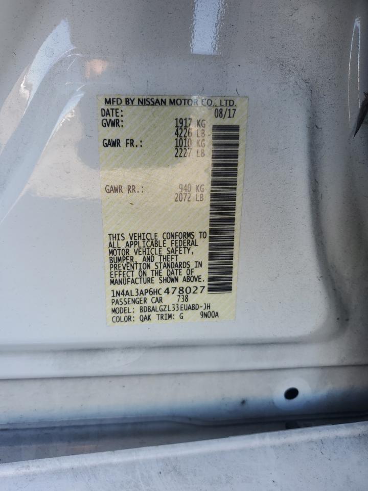 NISSAN ALTIMA 2.5 2017 р.в., (1N4AL3AP6HC478027) з США