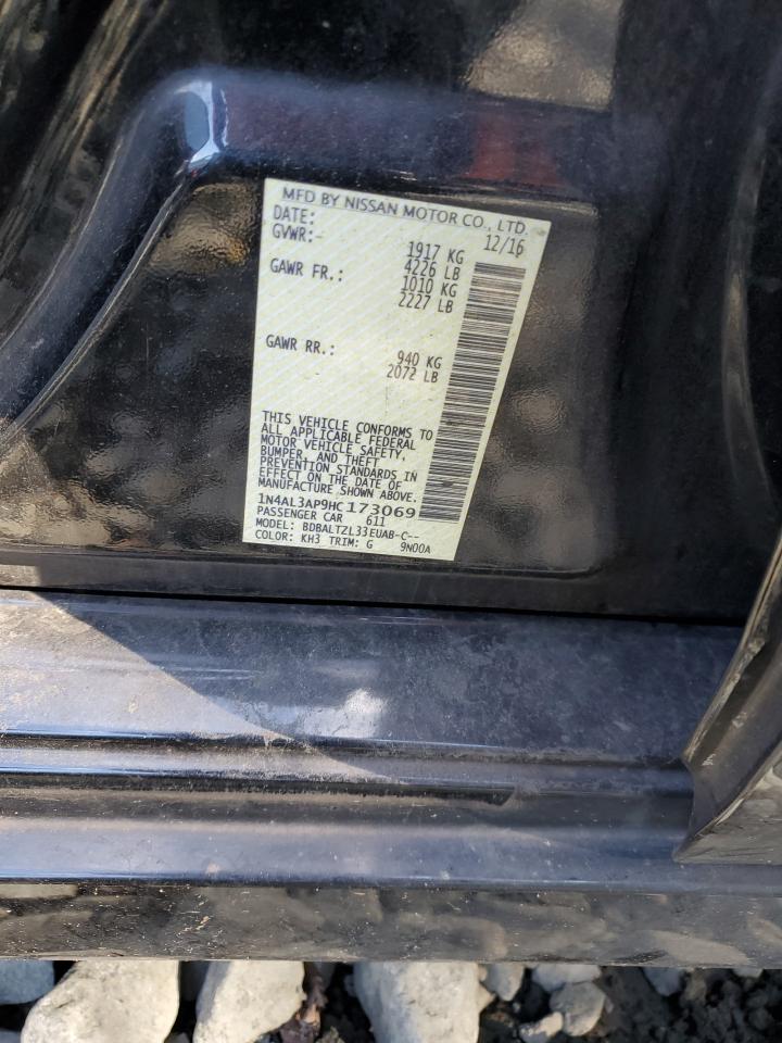 Колір ЧорнийЦиліндри 4VIN 1N4AL3AP9HC173069Стан НевідомоУшкодження Передня або задня