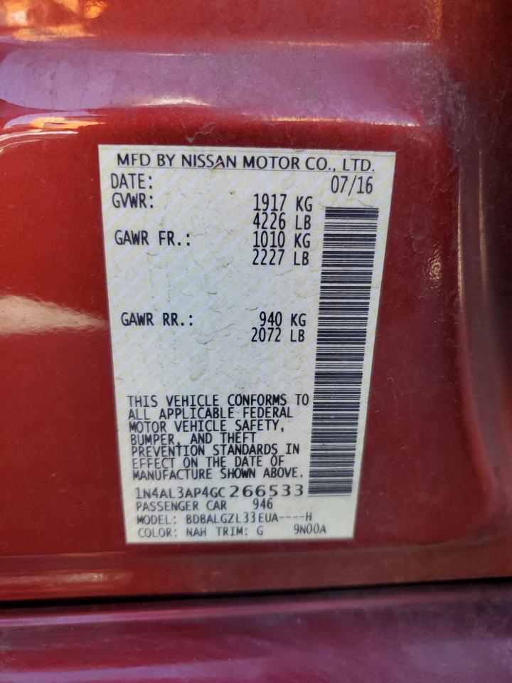 NISSAN ALTIMA 2.5 2016 р.в., (1N4AL3AP4GC266533) з США