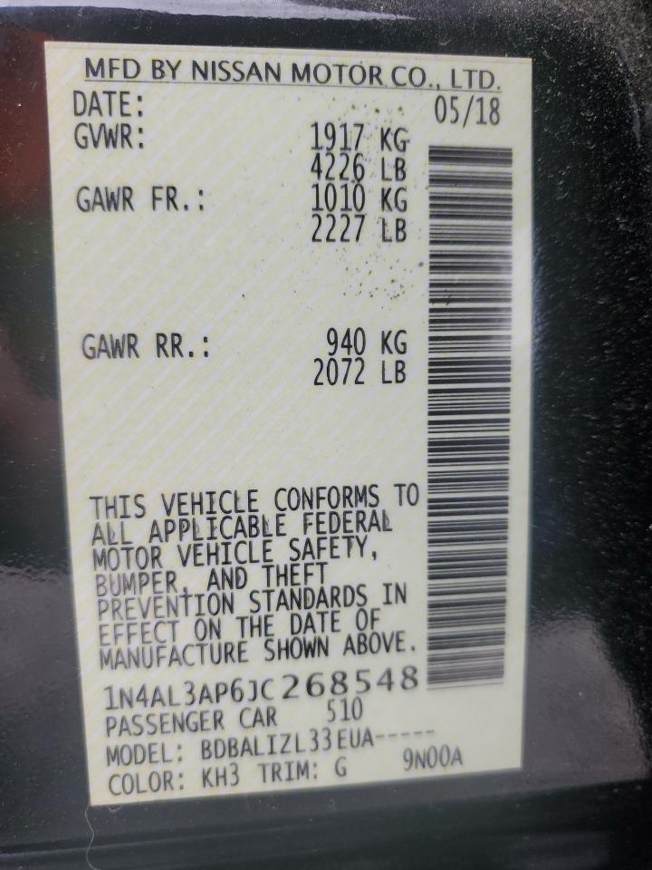 Колір ЧорнийЦиліндри 4VIN 1N4AL3AP6JC268548Стан Заводиться та їде (перевірено)Ушкодження Передня або задняДата аукціону 2025-11-26