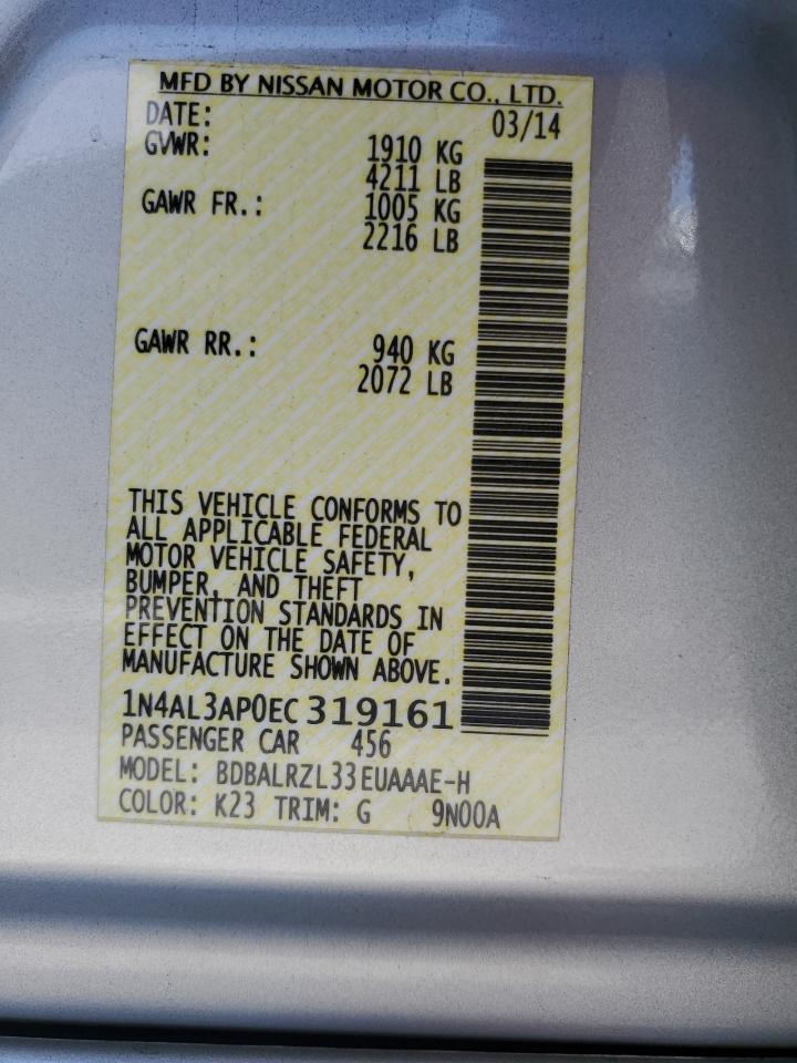 NISSAN ALTIMA 2.5 2014 р.в., (1N4AL3AP0EC319161) з США