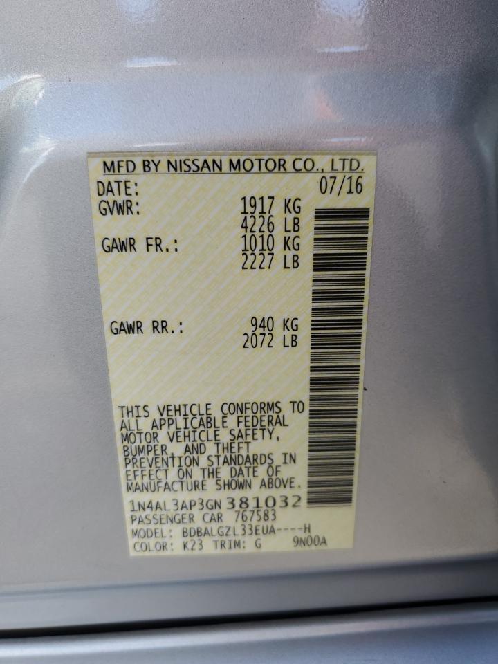 NISSAN ALTIMA 2.5 2016 р.в., (1N4AL3AP3GN381032) з США