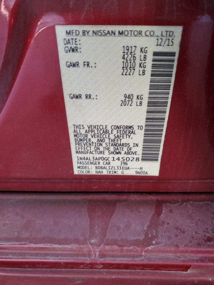 Колір БургундіяЦиліндри 4VIN 1N4AL3AP0GC145028Стан Заводиться та їде (перевірено)Ушкодження Передня або задня