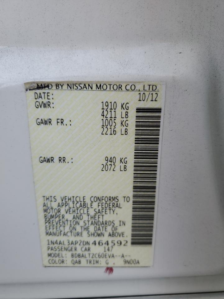 Колір БілийЦиліндри 4VIN 1N4AL3AP2DN464592Стан Заводиться та їде (перевірено)Ушкодження Передня або задня