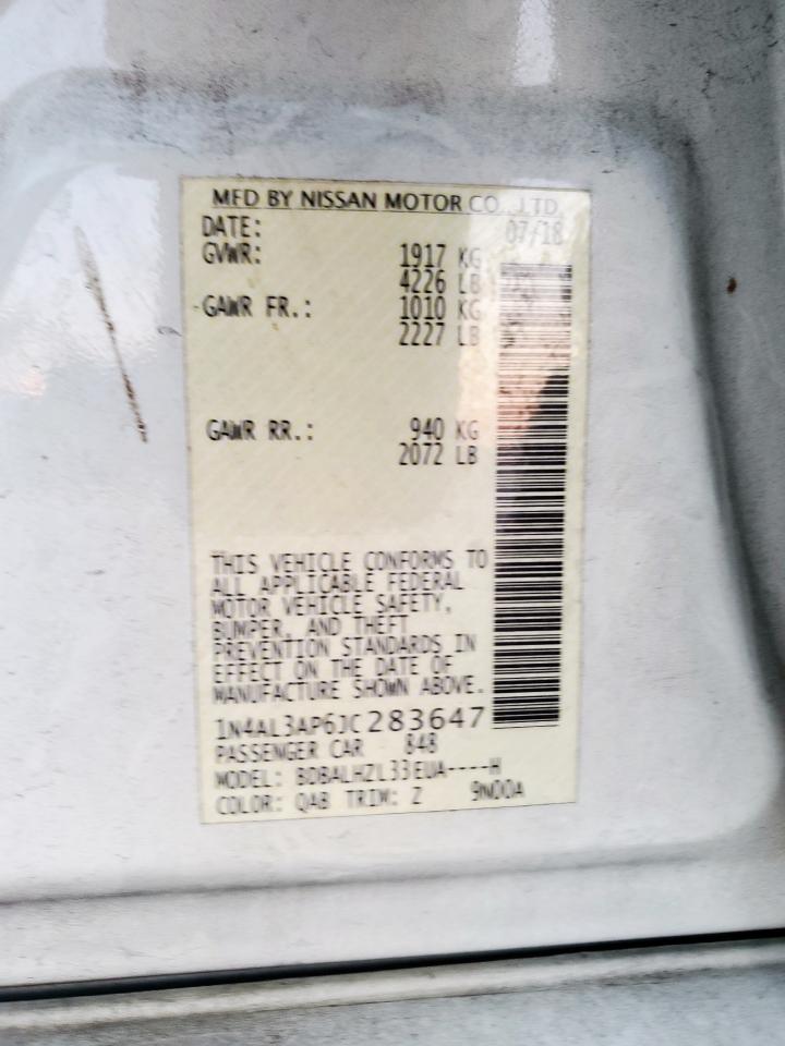 Колір БілийЦиліндри 4VIN 1N4AL3AP6JC283647Стан ЗаводитьсяУшкодження Передня або задня