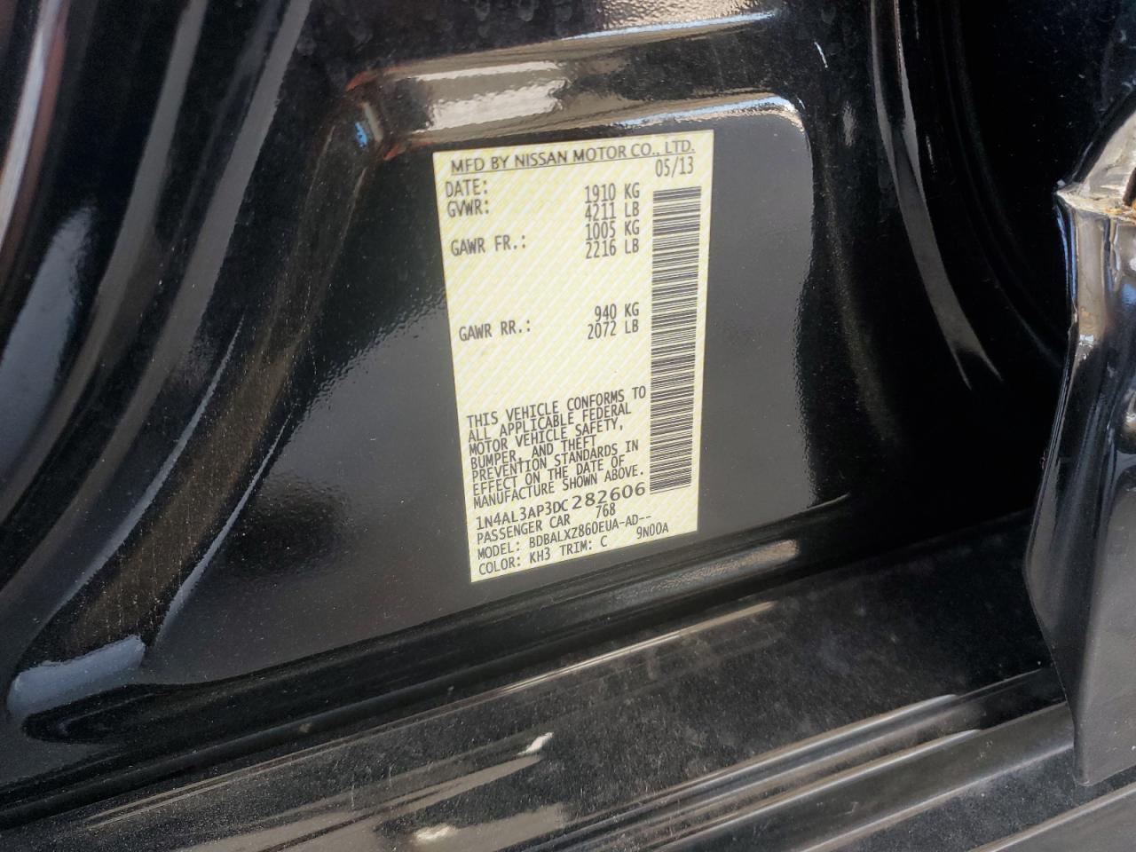 Колір ЧорнийЦиліндри 4VIN 1N4AL3AP3DC282606Стан Заводиться та їде (перевірено)Ушкодження З боків