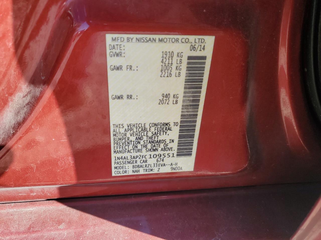 Колір ЧервонийЦиліндри 4VIN 1N4AL3AP2FC109551Стан Заводиться та їде (перевірено)Ушкодження Задня
