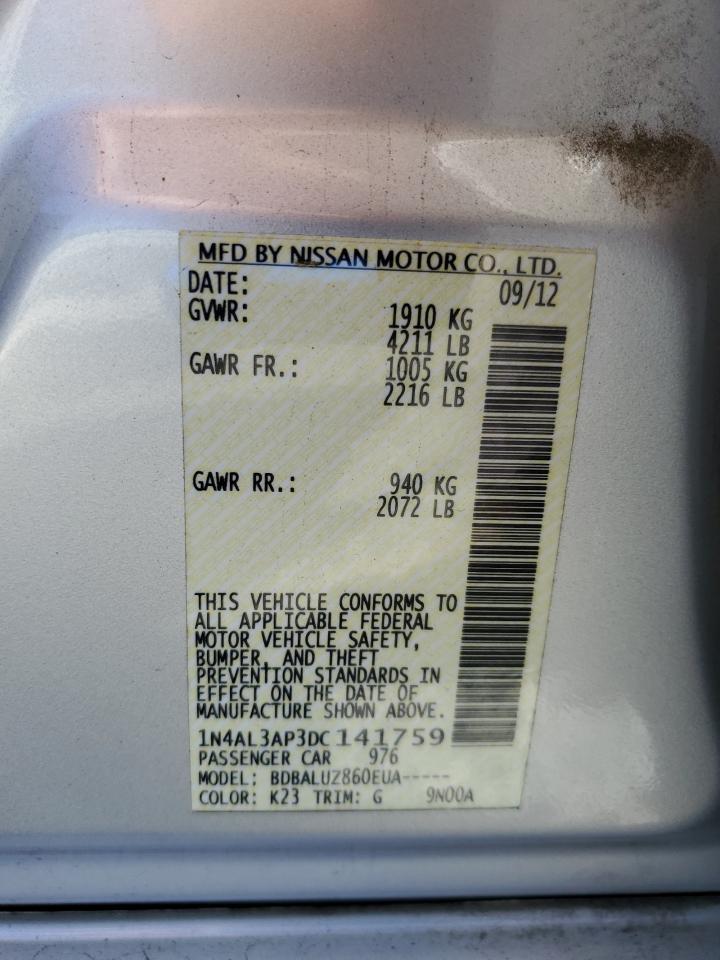 Колір СрібнийЦиліндри 4VIN 1N4AL3AP3DC141759Стан НевідомоУшкодження По всьому авто