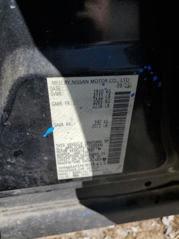 Колір ЧорнийЦиліндри 4VIN 1N4AL3AP2FN905415Стан Заводиться та їде (перевірено)Ушкодження Передня або задня