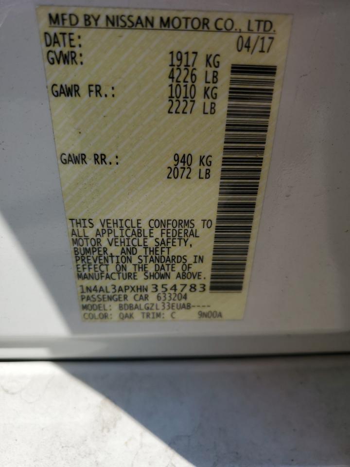 NISSAN ALTIMA 2.5 2017 р.в., (1N4AL3APXHN354783) з США