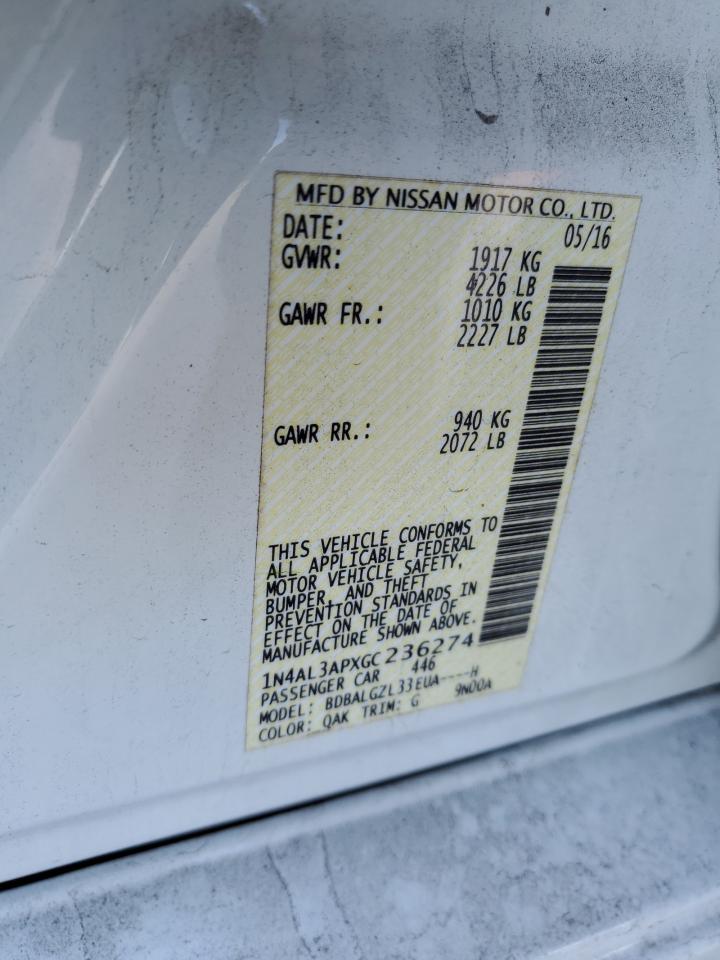 Колір БілийЦиліндри 4VIN 1N4AL3APXGC236274Стан НевідомоУшкодження Передня або задня