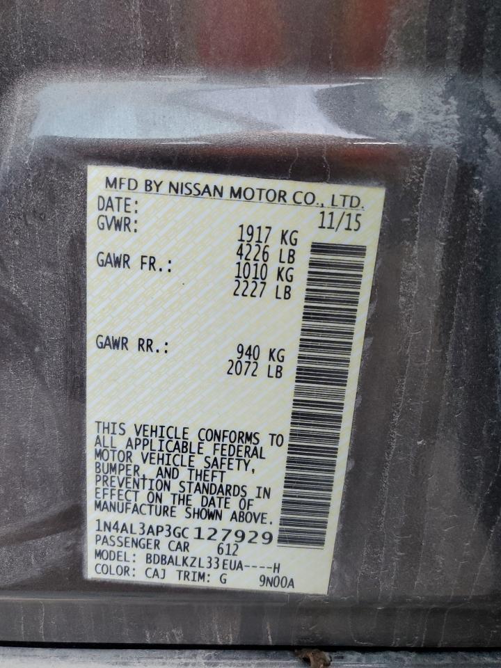 NISSAN ALTIMA 2.5 2016 р.в., (1N4AL3AP3GC127929) з США