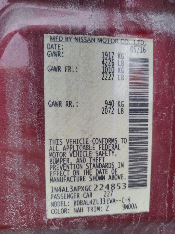 NISSAN ALTIMA 2.5 2016 р.в., (1N4AL3APXGC224853) з США
