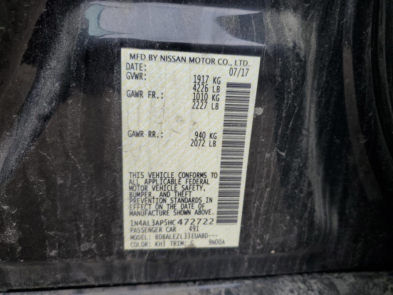Колір ЧорнийЦиліндри 4VIN 1N4AL3AP5HC472722Стан Заводиться та їде (перевірено)Ушкодження Передня або задня