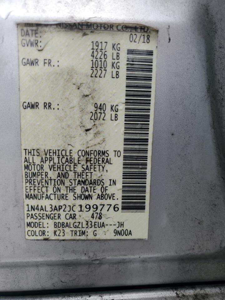 Колір СрібнийЦиліндри 4VIN 1N4AL3AP2JC199776Стан Заводиться та їде (перевірено)Ушкодження Передня або задня
