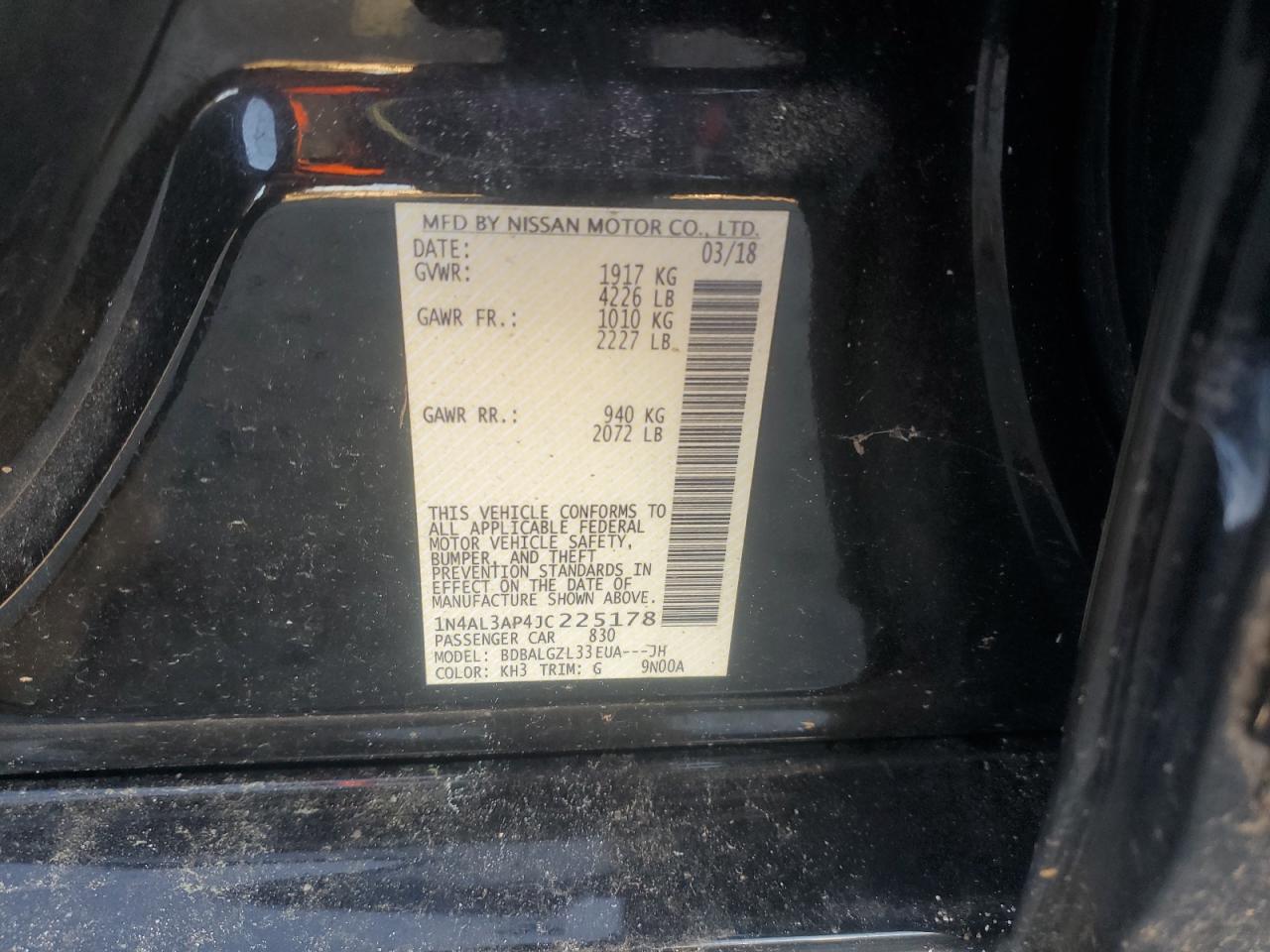 Колір ЧорнийЦиліндри 4VIN 1N4AL3AP4JC225178Стан Заводиться та їде (перевірено)Ушкодження Задня