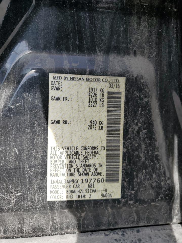 Колір ЧорнийЦиліндри 4VIN 1N4AL3AP9GC197760Стан НевідомоУшкодження Задня