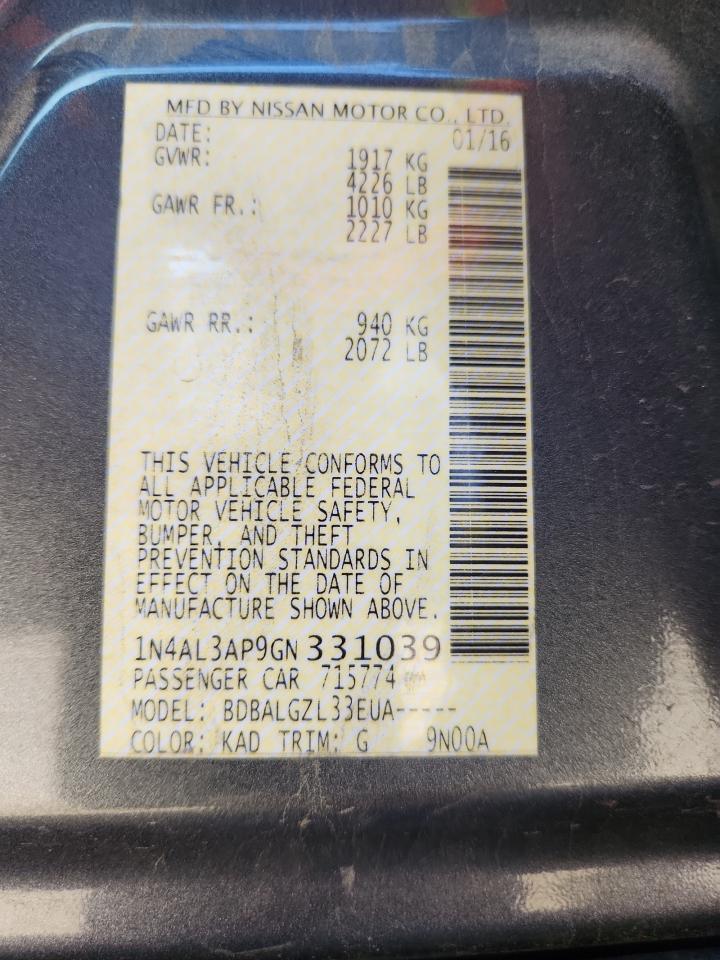 Колір СірийЦиліндри 4VIN 1N4AL3AP9GN331039Стан НевідомоУшкодження Передня або задня