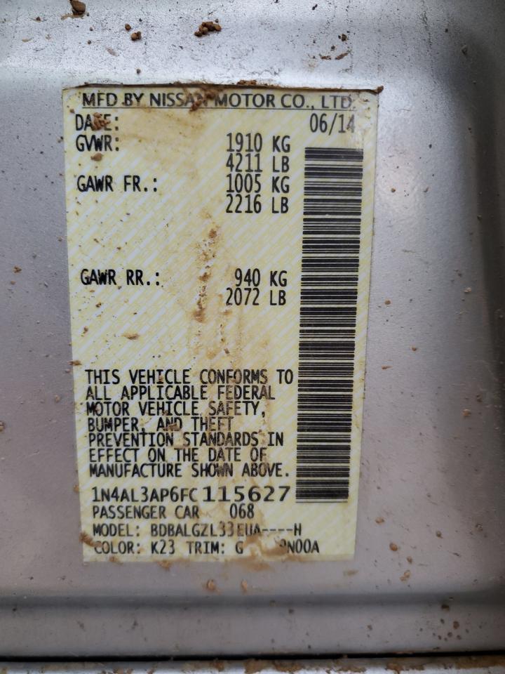 Колір СрібнийЦиліндри 4VIN 1N4AL3AP6FC115627Стан Заводиться та їде (перевірено)Ушкодження Передня або задня