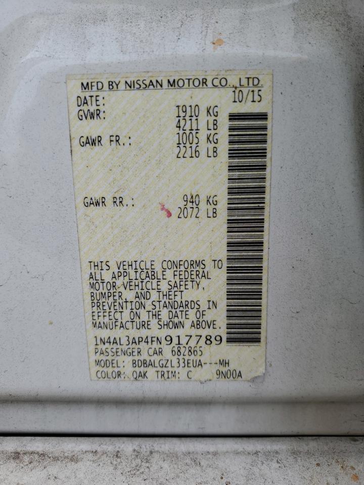 Колір БілийЦиліндри 4VIN 1N4AL3AP4FN917789Стан ЗаводитьсяУшкодження Передня або задня