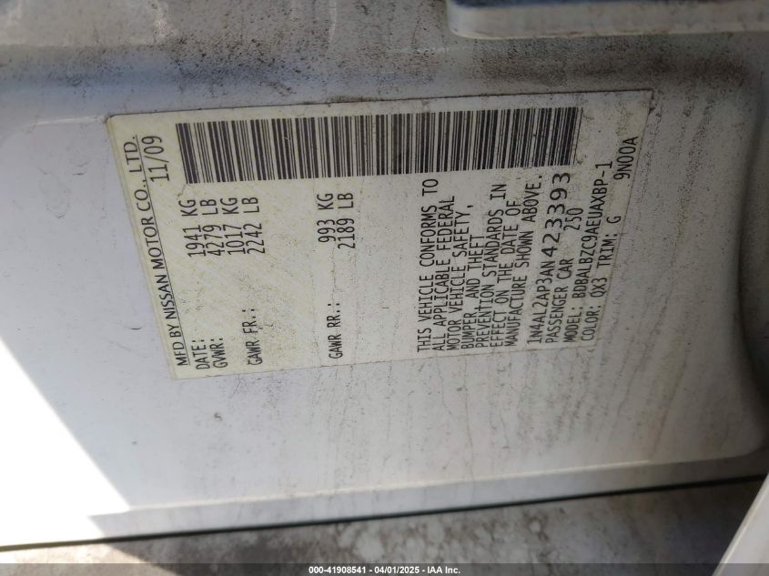 NISSAN ALTIMA 2.5 2010 р.в., Передній привід (1N4AL2AP3AN423393) з США