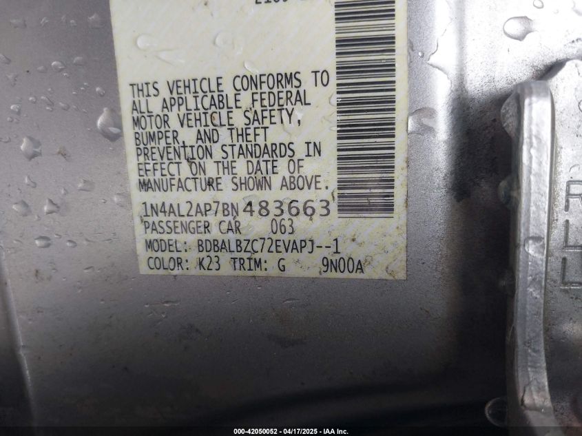 NISSAN ALTIMA 2.5 2011 р.в., Передній привід (1N4AL2AP7BN483663) з США