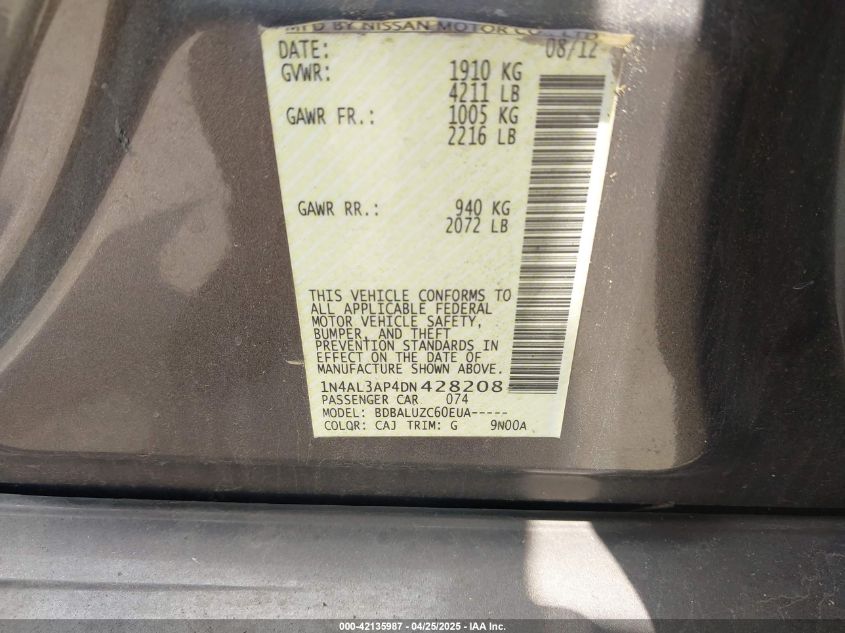 NISSAN ALTIMA 2.5 2013 р.в., Передній привід (1N4AL3AP4DN428208) з США