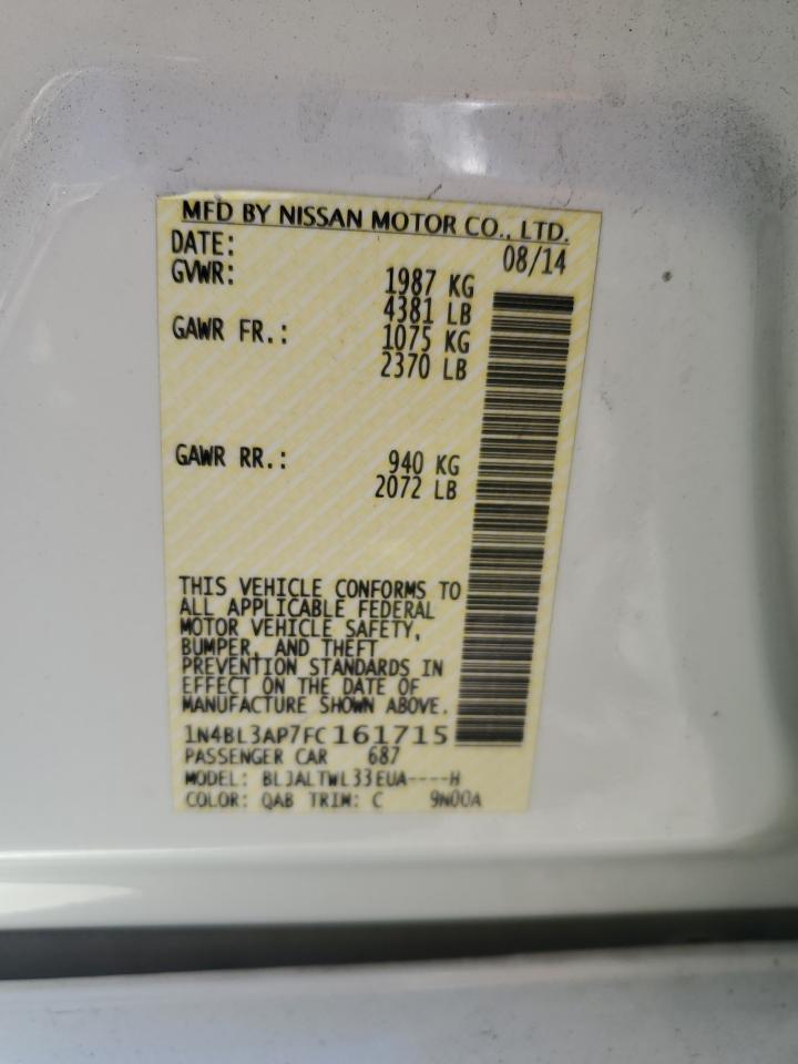 Колір БілийЦиліндри 6VIN 1N4BL3AP7FC161715Стан Заводиться та їде (перевірено)Ушкодження Передня або задня