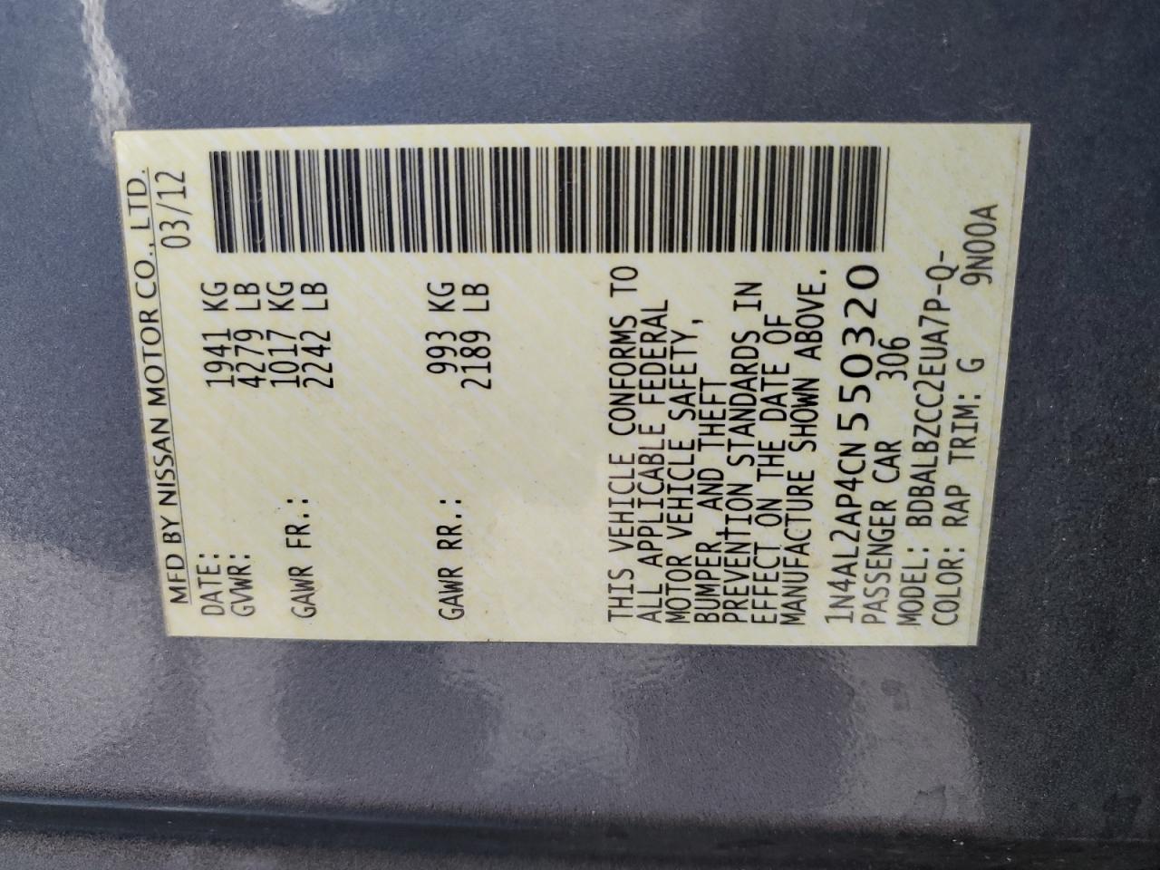 2012 NISSAN ALTIMA BASE