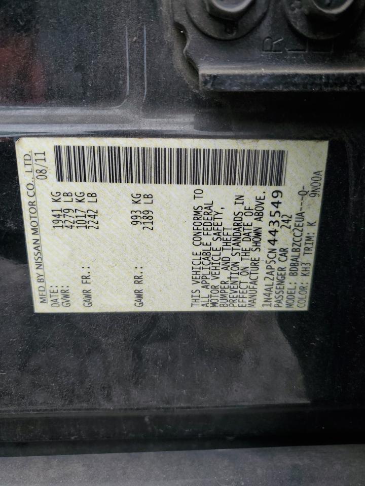Колір ЧорнийЦиліндри 4VIN 1N4AL2AP5CN443549Стан Заводиться та їде (перевірено)Ушкодження Передня або задня