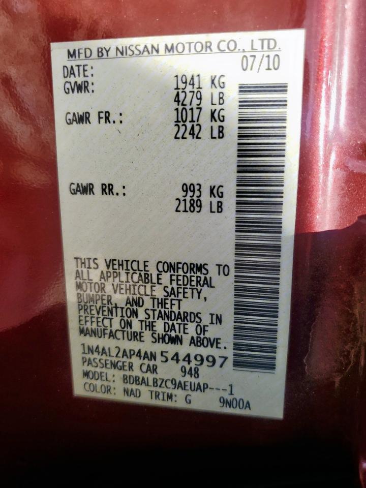 NISSAN ALTIMA 2.5 2010 р.в., (1N4AL2AP4AN544997) з США