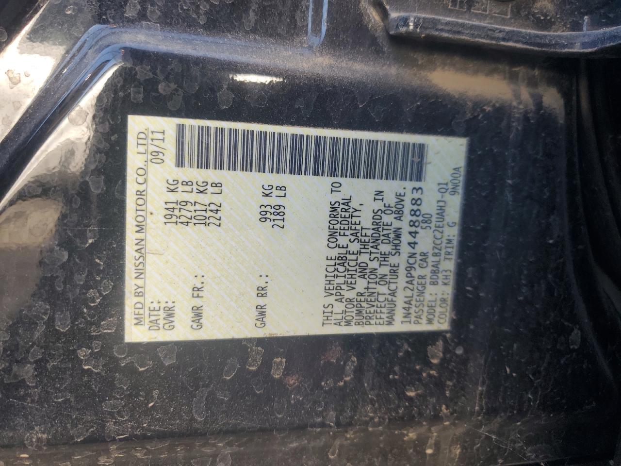 Колір ЧорнийЦиліндри 4VIN 1N4AL2AP9CN448883Стан Заводиться та їде (перевірено)Ушкодження Низ
