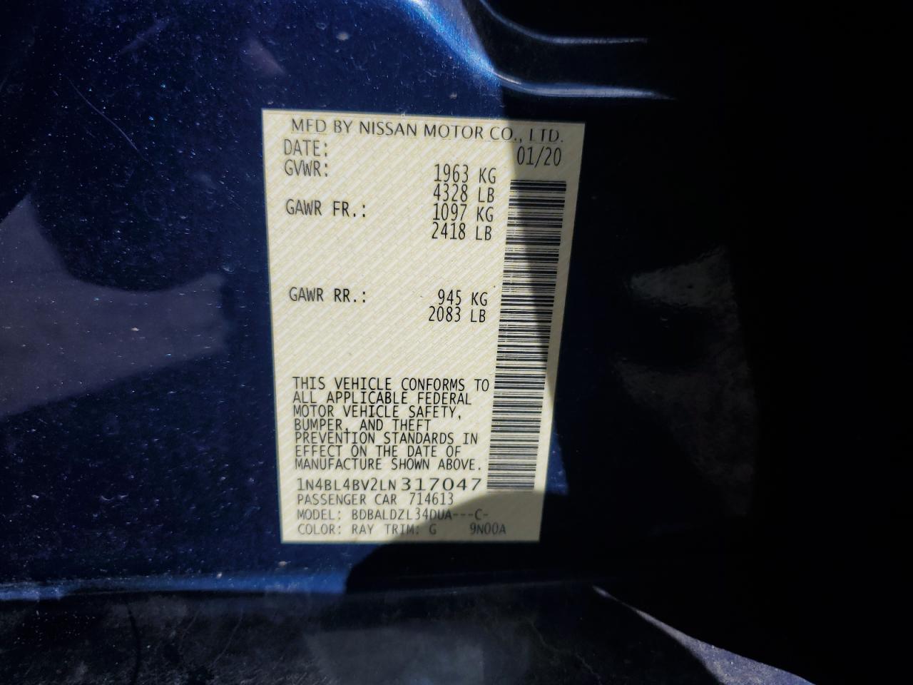 Колір СинійЦиліндри 4VIN 1N4BL4BV2LN317047Стан Заводиться та їде (перевірено)Ушкодження Передня або задня