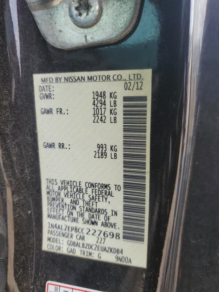 Колір ЧорнийЦиліндри 4VIN 1N4AL2EP8CC227698Стан НевідомоУшкодження Передня або задня