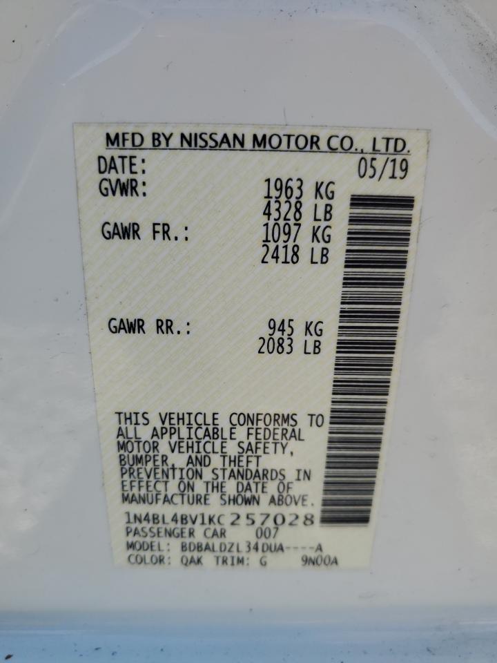 NISSAN ALTIMA 2.5 2019 р.в., (1N4BL4BV1KC257028) з США