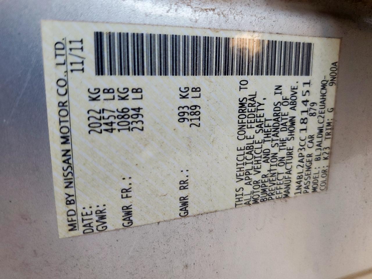 2012 NISSAN ALTIMA BASE