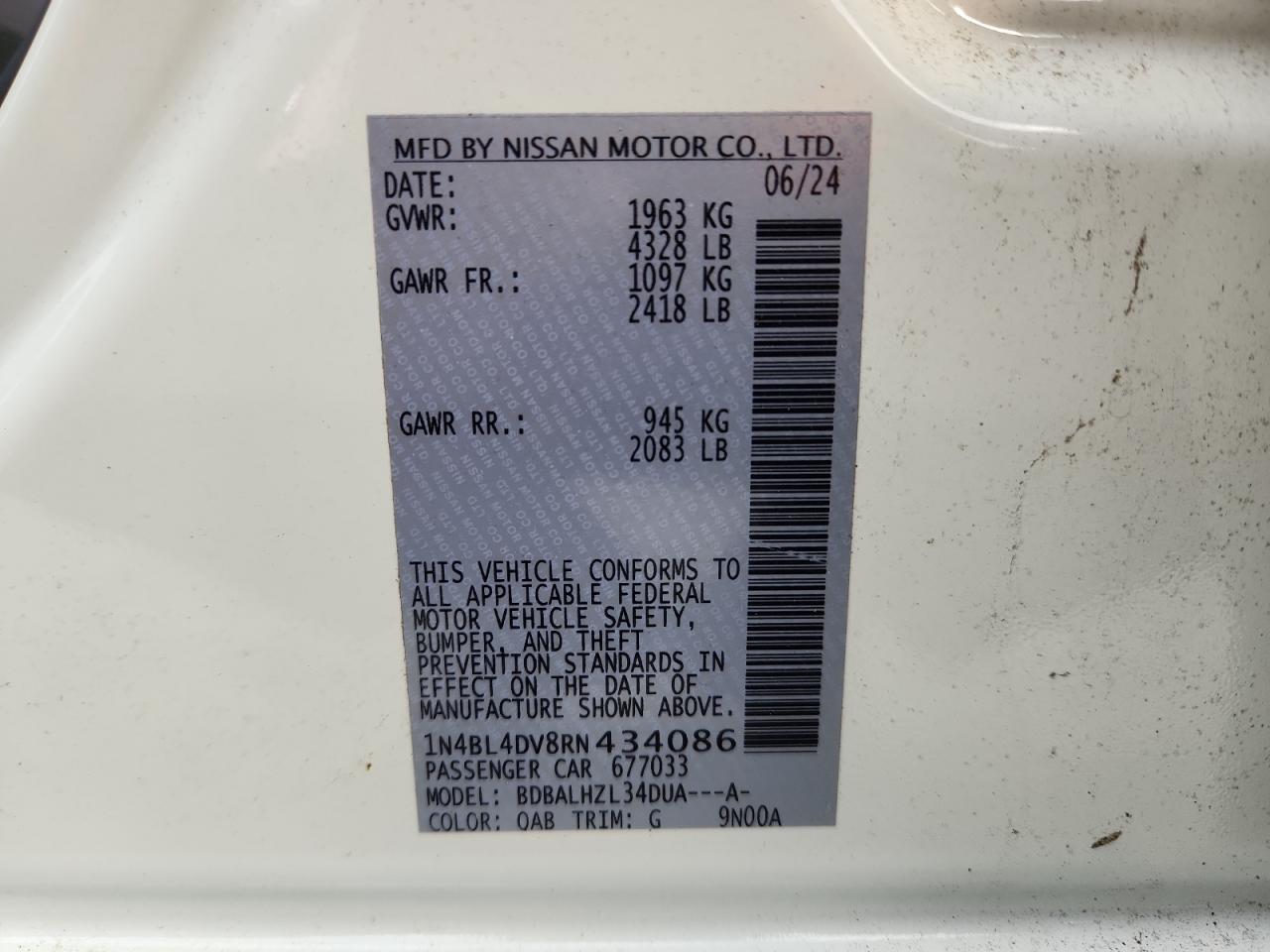 NISSAN ALTIMA 2.5 2024 р.в., (1N4BL4DV8RN434086) з США