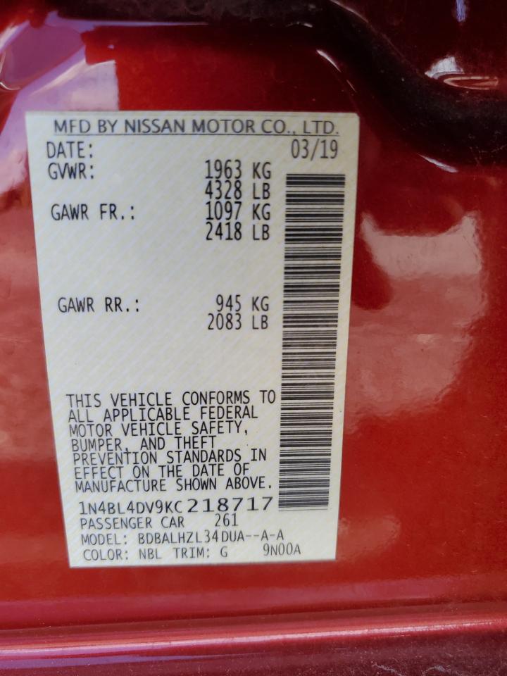Колір ЧервонийЦиліндри 4VIN 1N4BL4DV9KC218717Стан НевідомоУшкодження Передня або задня