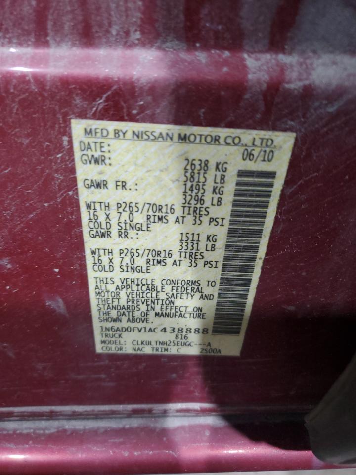 NISSAN FRONTIER 4.0 2010 р.в., 4x4 з заднім приводом (1N6AD0FV1AC438888) з США
